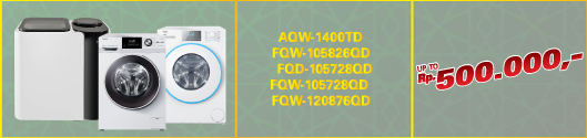 Gift Voucher senilai hingga Rp 500.000,- untuk pembelian AQW-1400TD / FQW-105826QD / FQD-105728QD / FQW-105728QD / FQW-120876QD.*