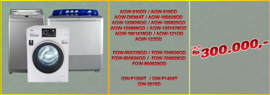 Gift voucher hingga Rp 300.000,- untuk setiap pembelian AQW-810DD / AQW-910DD / AQW-DK90AT / AQW-105826QD / AQW-120826QD / AQW-105825QD / AQW-120866QD / AQW-1201678QD / AQW-1051678QD / AQW-121QD / AQW-122DD / FQW-850728QD / FQW-700636QD / FQW-850636QD / FQW-700829QD / FQW-850829QD / QW-P1250T / QW-P1450T / QW-2070D.*