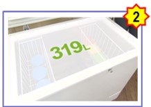Freezer AQF-450R memiliki fitur Super fast freezing, Bigger Capacity, Cooling Retention, White Coating Inner Liner, LED Interior Light, Extra Thickness Lid, Counter Balanced Lid, dan Eco-Friendly.