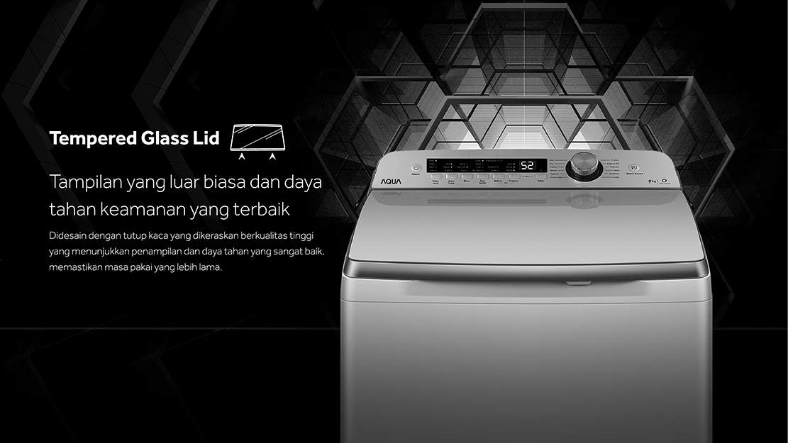 Mesin Cuci dengan fitur Hijab Mode, Low Watt, Soak Function, Water Selector & Tempered Glass Lid