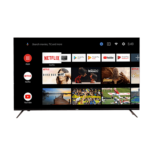 Android Smart TV 55 inch dilengkapi Smart AI Google Assistant, dengan resolusi UHD.