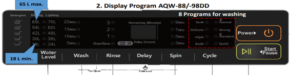 Note : Untuk proses pencucian pada unit top loading AQUA Elektronik keseluruhan bersifat otomatis mulai dari pengisian air, cuci, bilas dan pengeringan. Harap kran air dibuka selama mesin cuci digunakan. Tidak disarankan pengisian air secara manual menggunakan air atau ember karena dapat merusak program mesin cuci dalam jangka panjang.