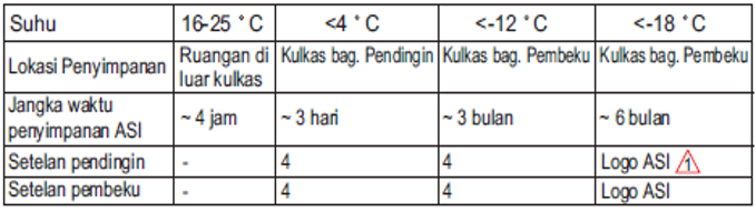 - Setelah mencair, segera konsumsi tidak lebih dari 24 jam, apabila disimpan di dalam ruangan pendingin kulkas, atau 2 jam apabila disimpan diluar kulkas.